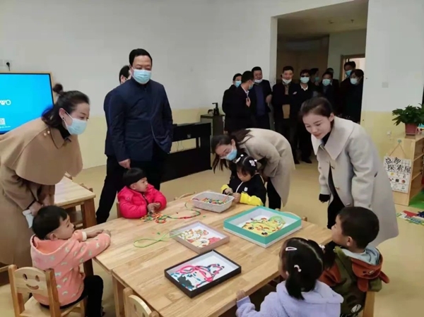 闫希军荣誉主席一行先后参观了幼儿园功能室、活动室、幼儿寝室、厨房,查看了幼儿园整体环境创设和内配保教设施建设,观看了幼儿的户外运动、室内特色游戏和区域活动,并与孩子们进行了亲切的互动交流。详细了解了幼儿园的师资配备、开学招生、教育教学、教师培训和幼儿园的中长期发展规划等。